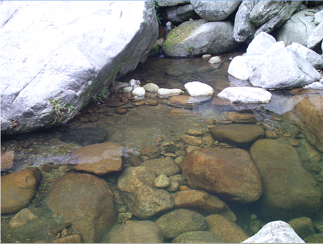 11:00 — 到达登山小路入口,徒步30分钟左右到达溪谷,有大大小小的潭子很多,路况好走,很清静,溪水清澈。开始煮茶,泡潭,体验一下以前道观神仙在这里享受的味道。